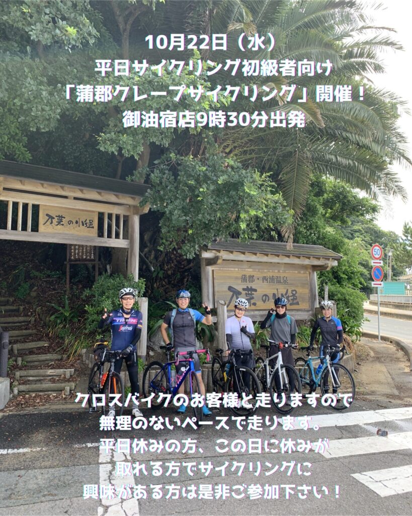 【平日サイクリング】10月22日(水)初級者向け「蒲郡クレープサイクリング」を開催します。