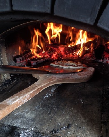 ピザは店舗外設置の石窯で焼きます。